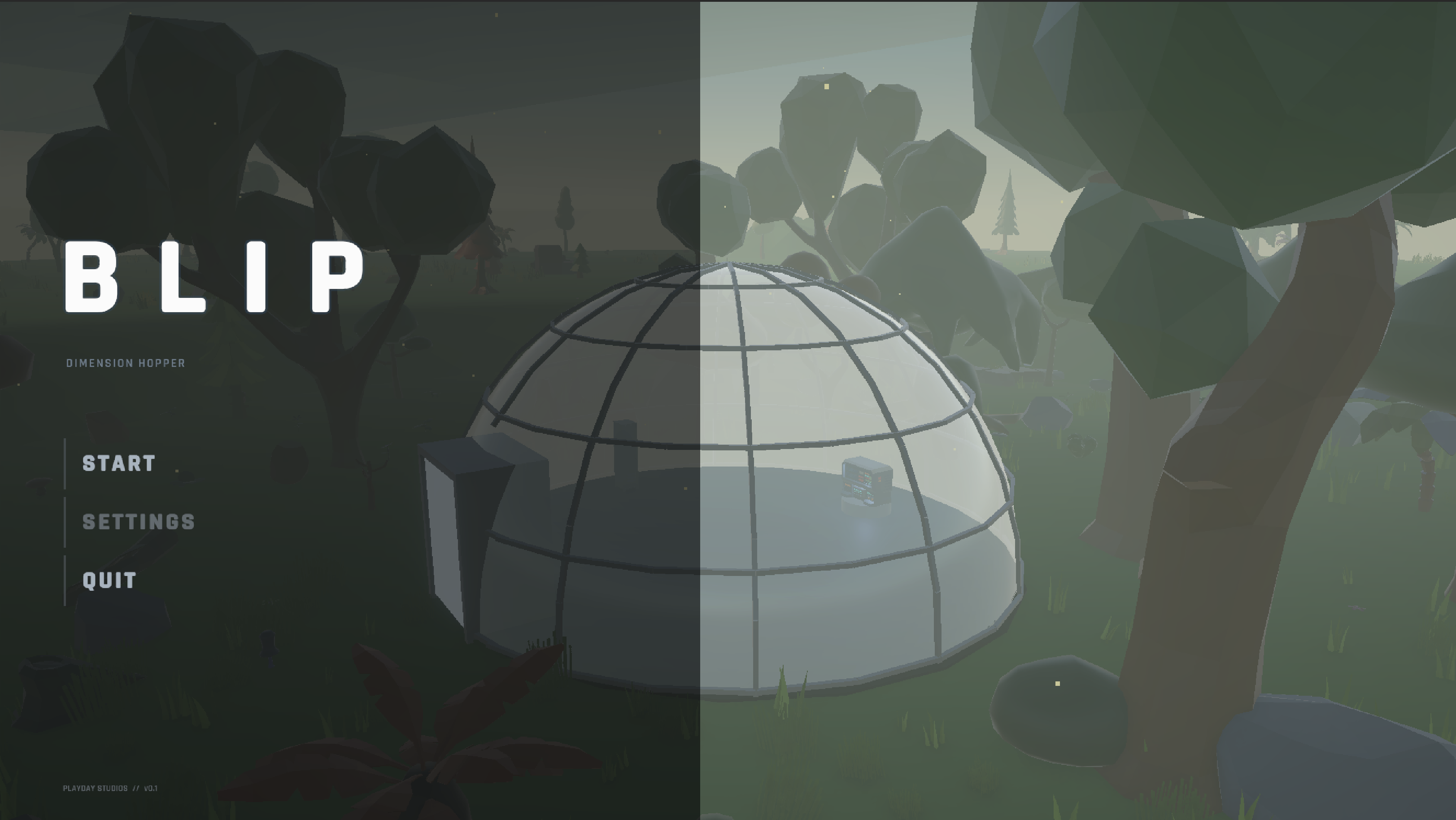 Your dome blips between procedurally generated dimensions on a timer. When the counter hits zero, the dome moves on, with or without you.